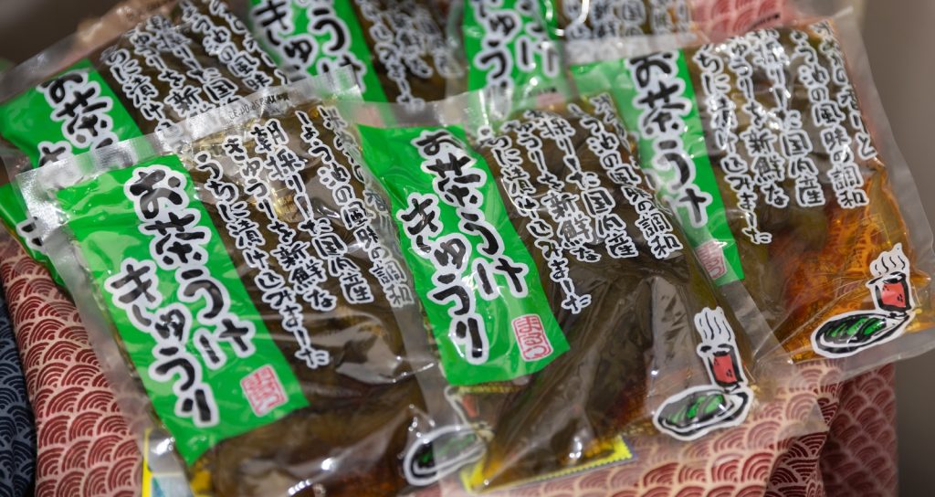 おすすめは「お茶うけきゅうり」。年間約17万パックも売れるという人気商品です。ぬか漬けの発酵調味液をしょうゆにブレンドしているため、角が取れた味わいになるのだそう。「子どもにも好かれる味です」と鶴田さん。