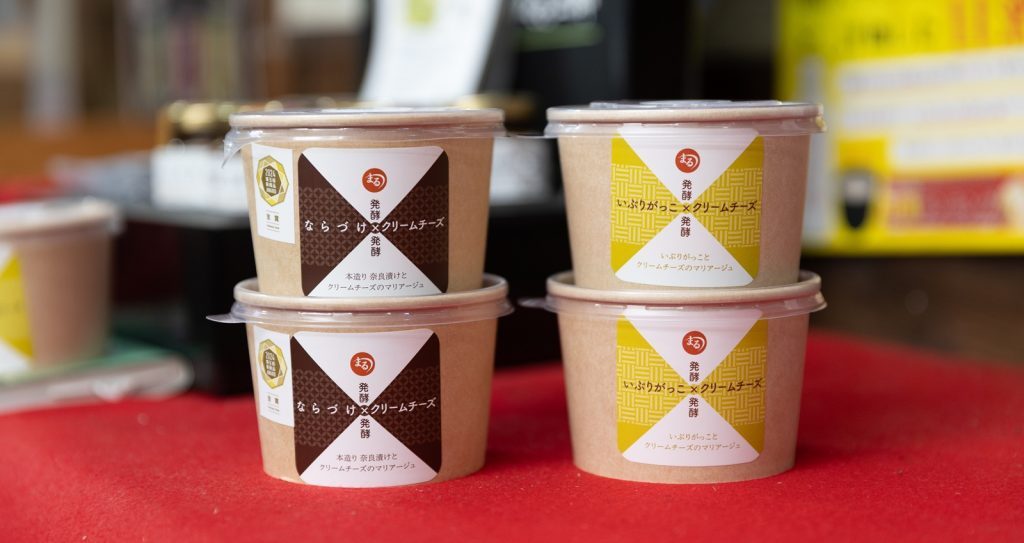 最近注目を集めているのは、「ならづけクリームチーズ」と「いぶりがっこクリームチーズ」。漬物とクリームチーズを組み合わせたこのシリーズは、深谷の漬物屋と日本酒の蔵元が市内の飲食店とコラボレーションして魅力を発信する「漬物・酒BAR」がきっかけで誕生しました。