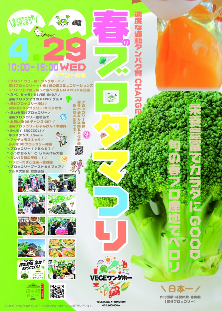4月29日(水・祝)は【春のブロタマつり】を開催します!楽しい企画もりもり盛りだくさん!ぜひ深谷ブロッコリーに会いに来てください!